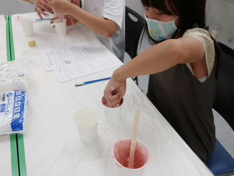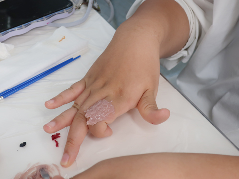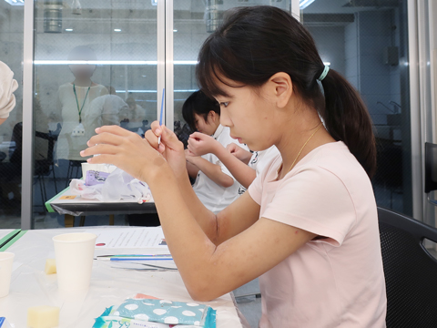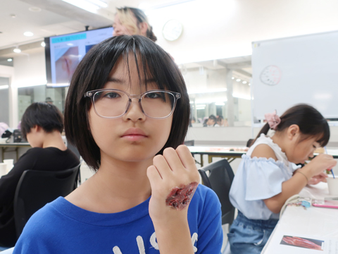- 特殊メイクを知れて良かったです。特殊メイクはグロい感じのユニバとかのゾンビなどと思っていたけど、食べ物や看板も作っていてびっくりしました。(小4女子)