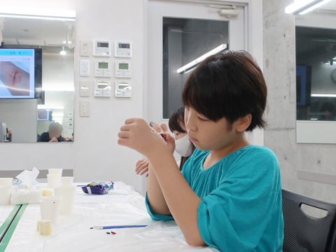 - 実際にプロの方から技術を学ぶことで、映像や舞台での特殊メイクの重要さを改めて感じました。参加前よりも「裏方の仕事」に興味が湧き、将来的にメイクを通して人を変身させる仕事に携わってみたいと感じているようです。(小4女子)